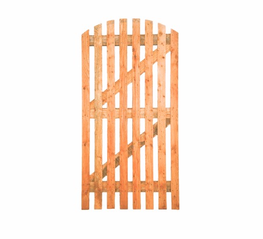 The Pailing Gate is constructed from vertical wooden slates. These slates are typically evenly spaced and attached to horizontal rails creating the gate. Its classic design makes it a popular choice for homeowners looking to enhance their outdoor spaces while providing a clear boundary and access point. Arched Pailing Garden Gates are decorative garden gates with a curved top