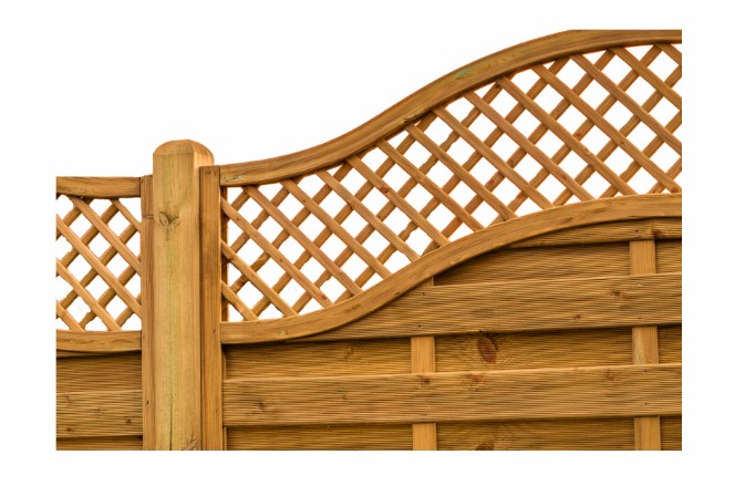 A European fence panel is a decorative and functional garden or property boundary made from wooden or metal slats, often featuring intricate designs or lattice work.